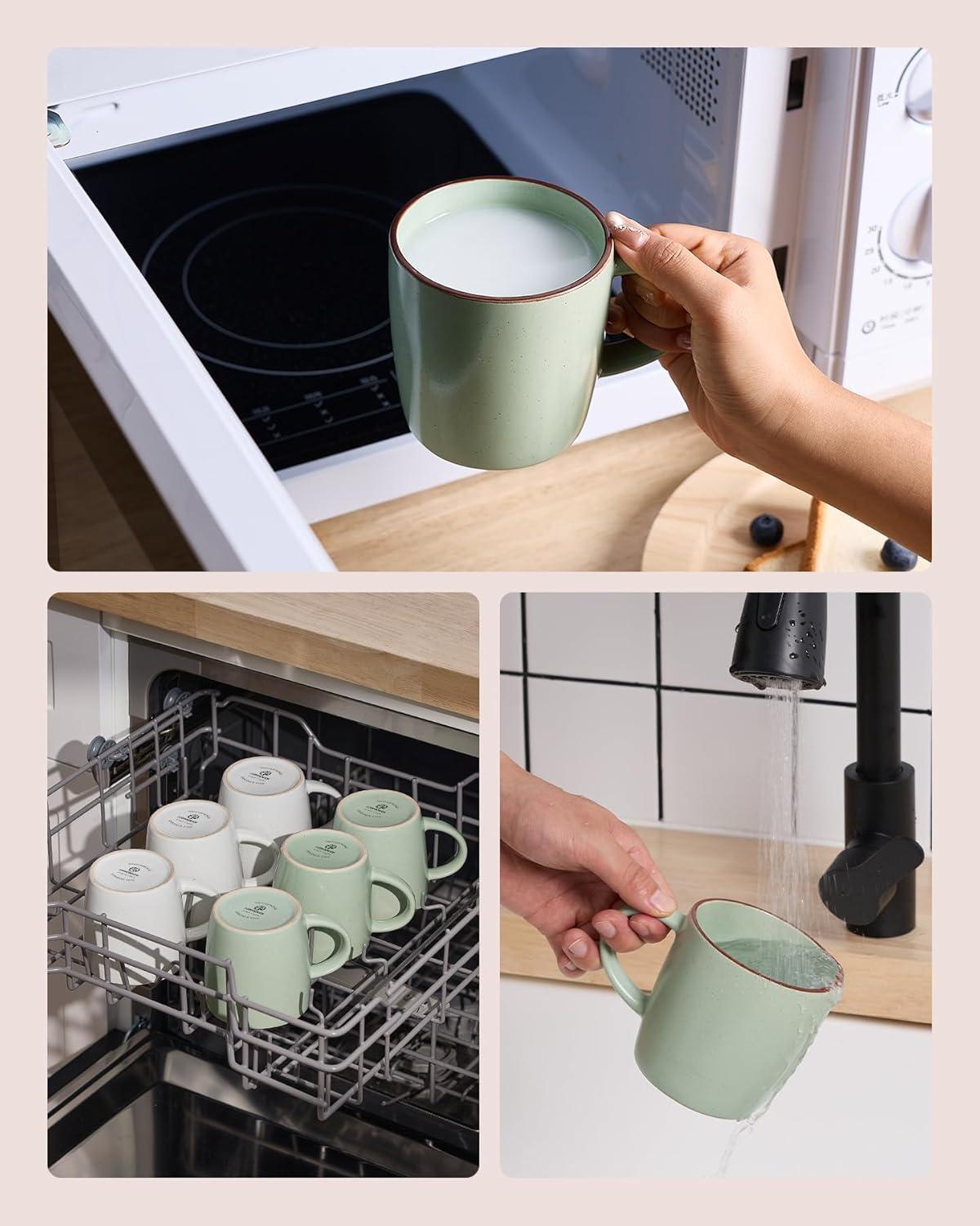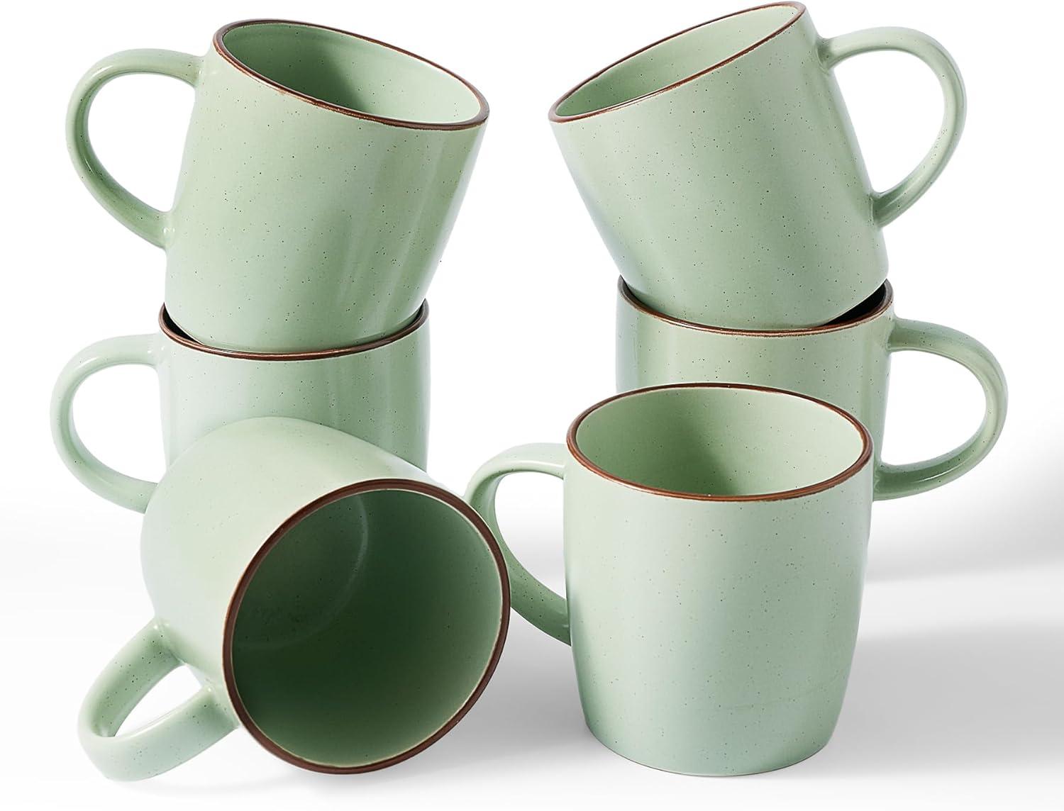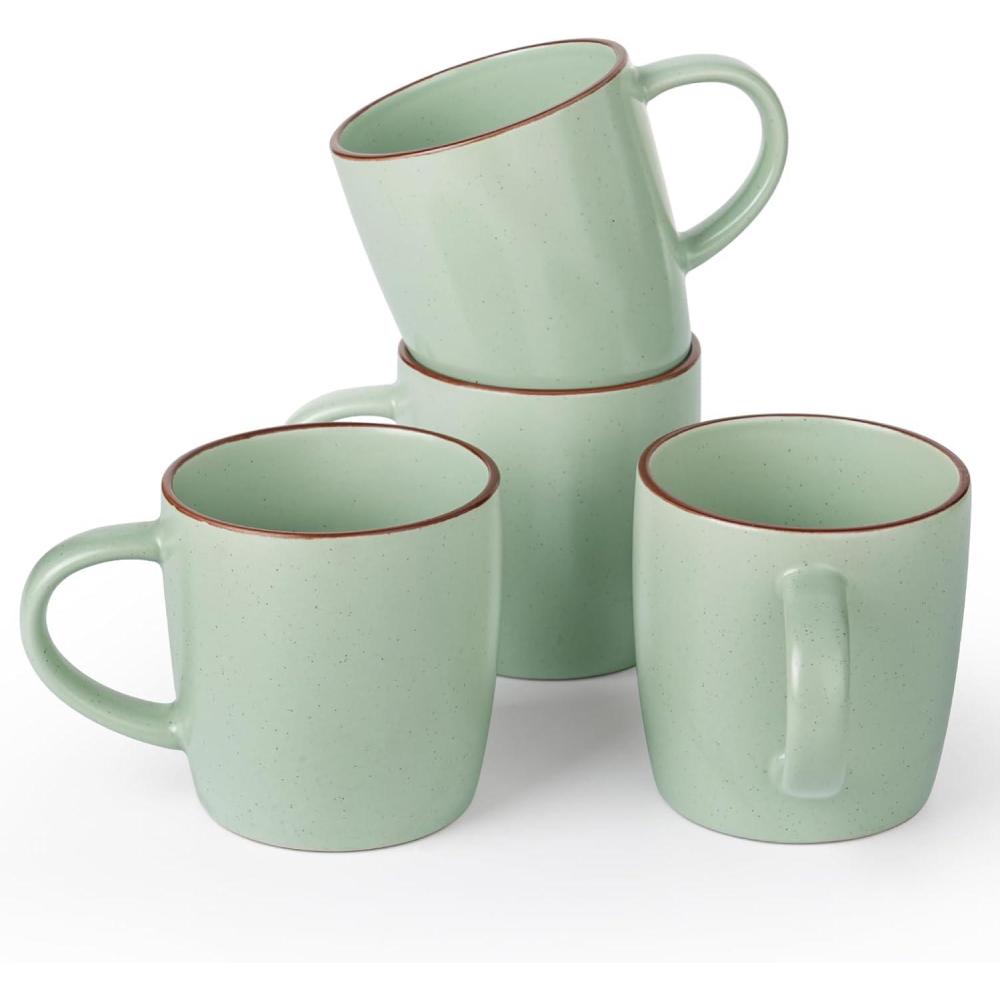 famiware Coffee Mugs for 4, 13 oz Mug Set, Dringking Cup with Handle for Coffee, Tea, Cocoa, Milk, Milkyway serise, White+Cinnamon Brown(Mercury-Light Green)