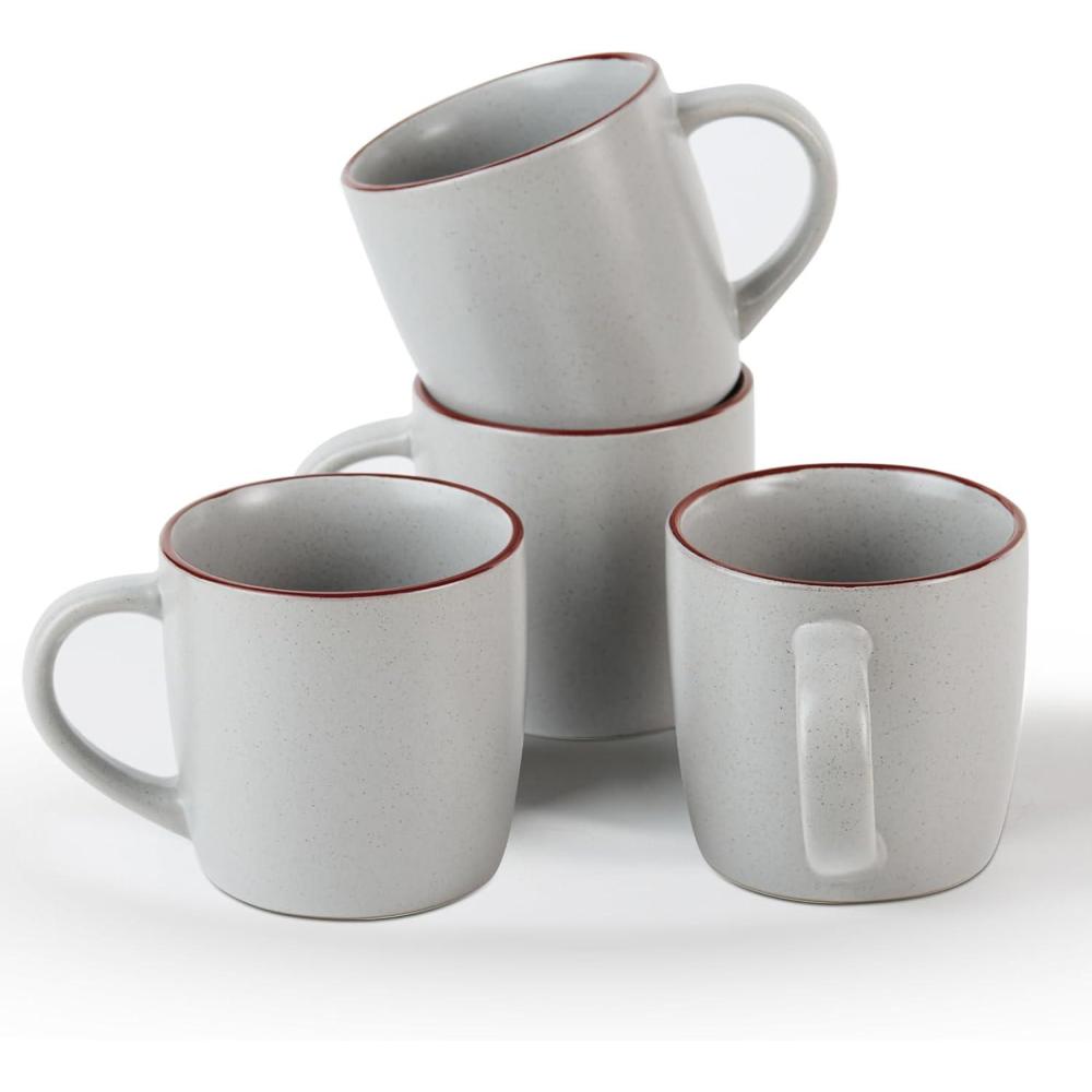 famiware Coffee Mugs for 4, 13 oz Mug Set, Dringking Cup with Handle for Coffee, Tea, Cocoa, Milk, Milkyway serise, White+Cinnamon Brown(Mercury-Light Grey)
