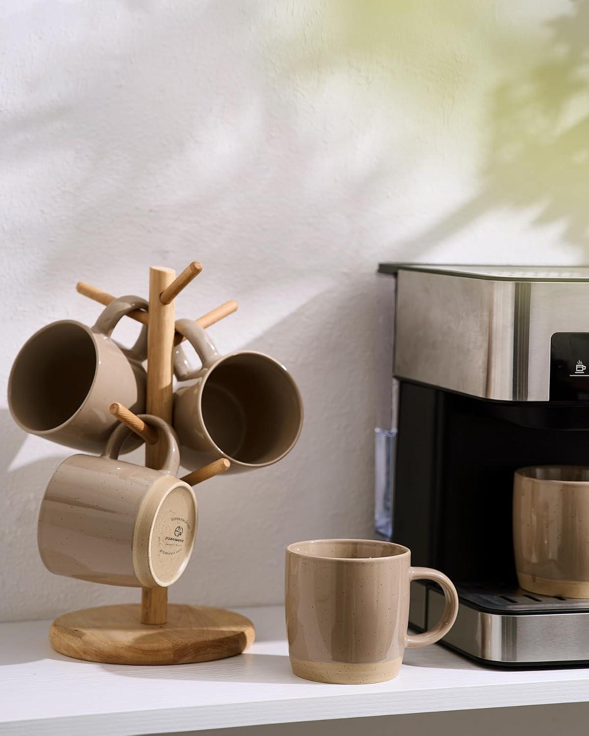 famiware Coffee Mugs for 4, 13 oz Mug Set, Dringking Cup with Handle for Coffee, Tea, Cocoa, Milk, Milkyway serise, White+Cinnamon Brown(Milkyway-Cinnamon Brown)