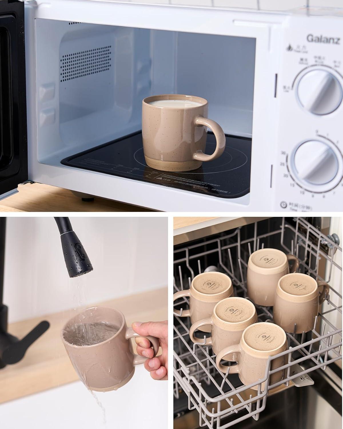 【COFFEE MUG SET OF 4】These coffee mugs hold up to 13oz of your favorite beverage, Suitable for coffee, coca, tea, milk, chocolate with something added or whatever you would like in a mug