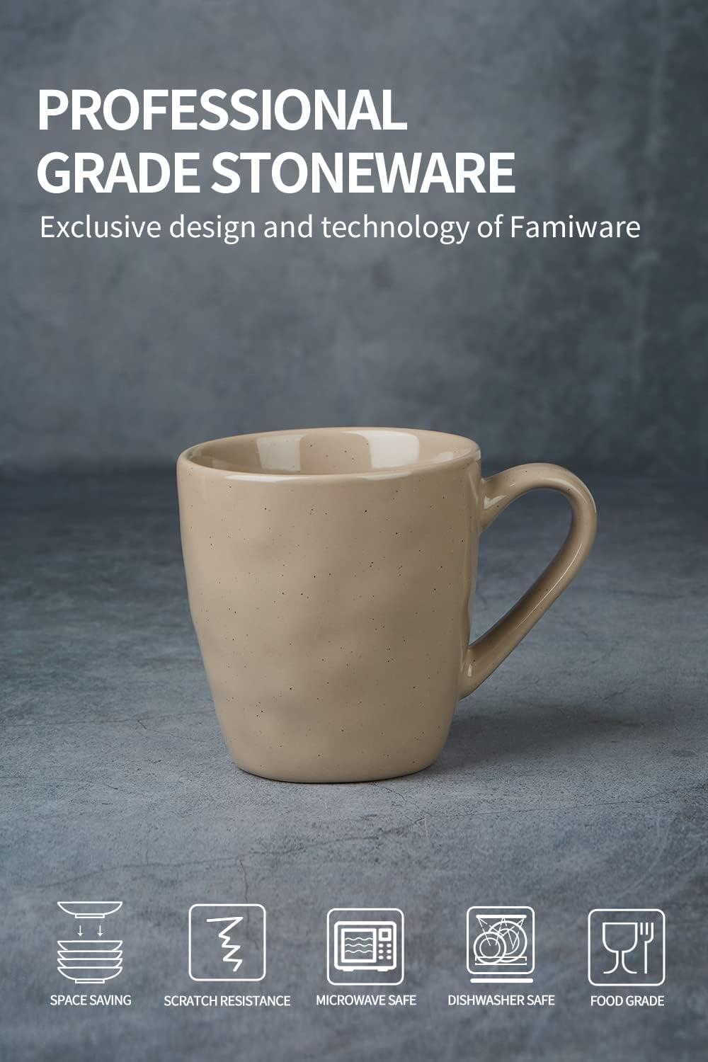 ✅【PREMIUM STONEWARE CRAFTSMANSHIP】Indulge in the superior quality of Famiware's stoneware mugs. Crafted with care, our mugs are finished with an unique lead-free glaze, ensuring your health and peace of mind. The durable construction provides excellent heat retention, keeping your drinks at the perfect temperature for longer