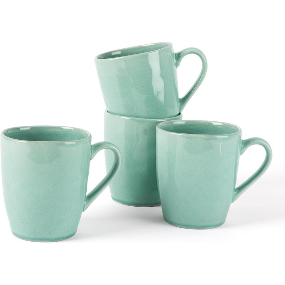 imagefamiware Coffee Mugs Set of 4 Ocean Round 115oz Coffee Cup Set with Handle for Cocoa Milk Hot Chocolate Tea or Water Stoneware Cups for Kitchen Reactive Glaze Microwave Dishwasher Safe BlueAuroraMint Green