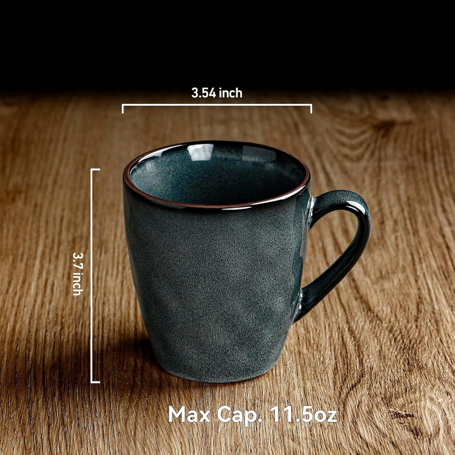 【Coffee Mugs Set of 4】Each mug holds up to 11.5oz of your favorite beverage. Great for Latte, Hot Tea, Cappuccino, Mocha, Cocoa, Milk, Hot Chocolate, smoothie,and more. Suitable for families and gatherings.