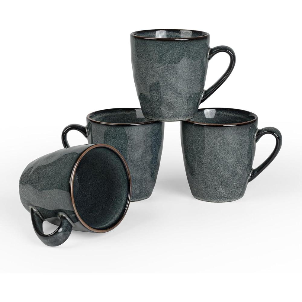 imagefamiware Coffee Mugs Set of 4 Ocean Round 115oz Coffee Cup Set with Handle for Cocoa Milk Hot Chocolate Tea or Water Stoneware Cups for Kitchen Reactive Glaze Microwave Dishwasher Safe BlueOcean RoundDeep Forest