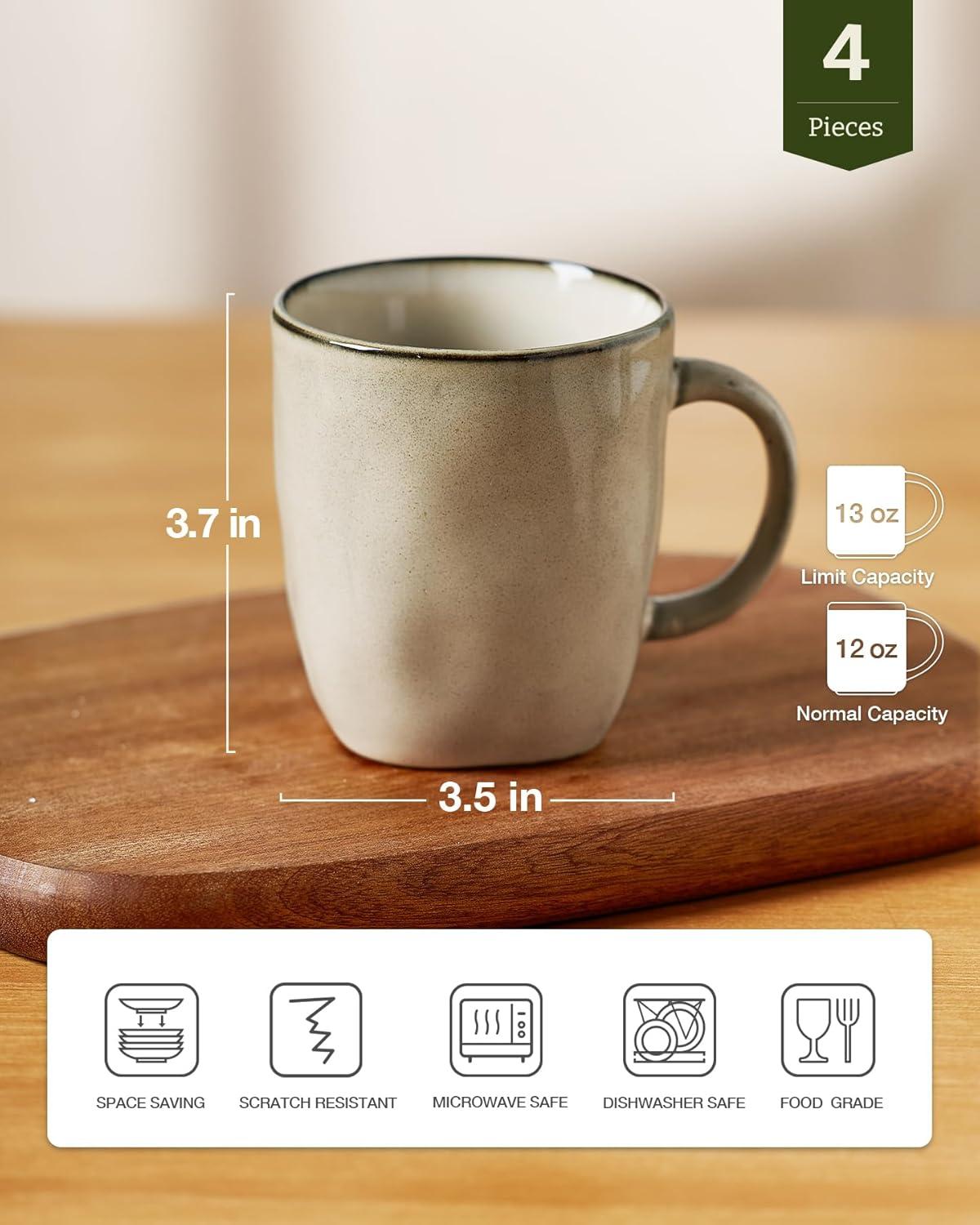 【Coffee Mugs Set of 4】Each mug holds up to 11.5oz of your favorite beverage. Great for Latte, Hot Tea, Cappuccino, Mocha, Cocoa, Milk, Hot Chocolate, smoothie,and more. Suitable for families and gatherings.