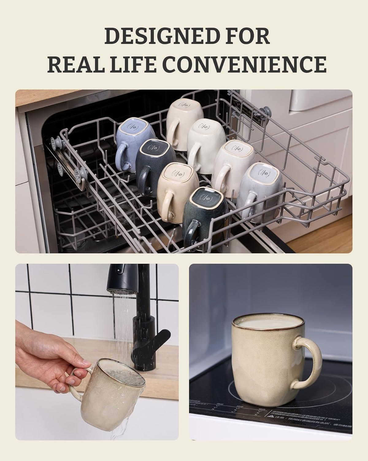 【Dishwasher and Microwave Safe】 Famiware Stoneware coffee cups for the kitchen are made of premium stoneware. Each plate and bowl is dishwasher and microwave safe.