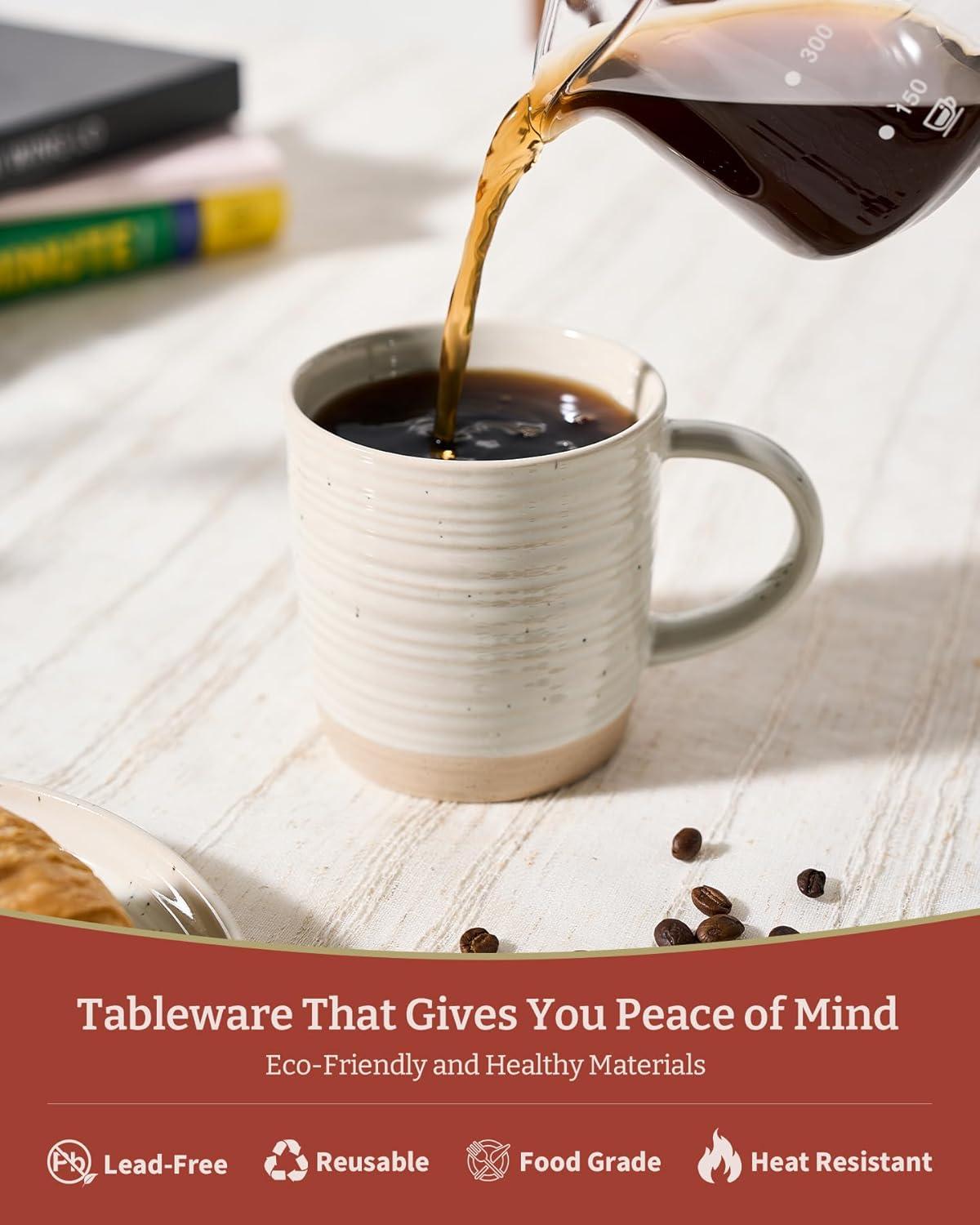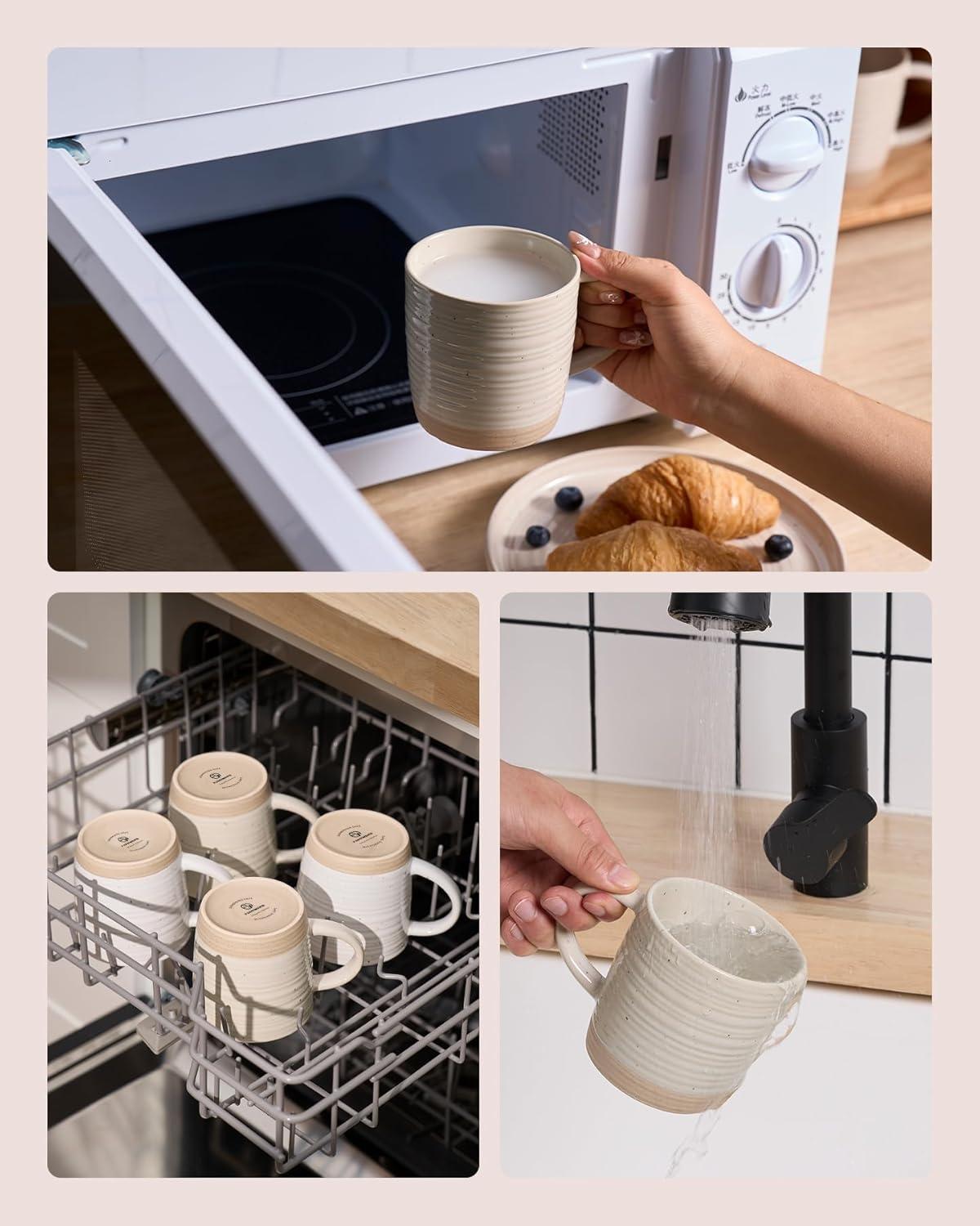 Safe to use: The ceramic coffee mugs are made of food-grade glaze and fired at 2340°F for 13.5 hours, making the mug set stronger, more durable, lead-free, cadmium-free, eco-friendly and healthier
