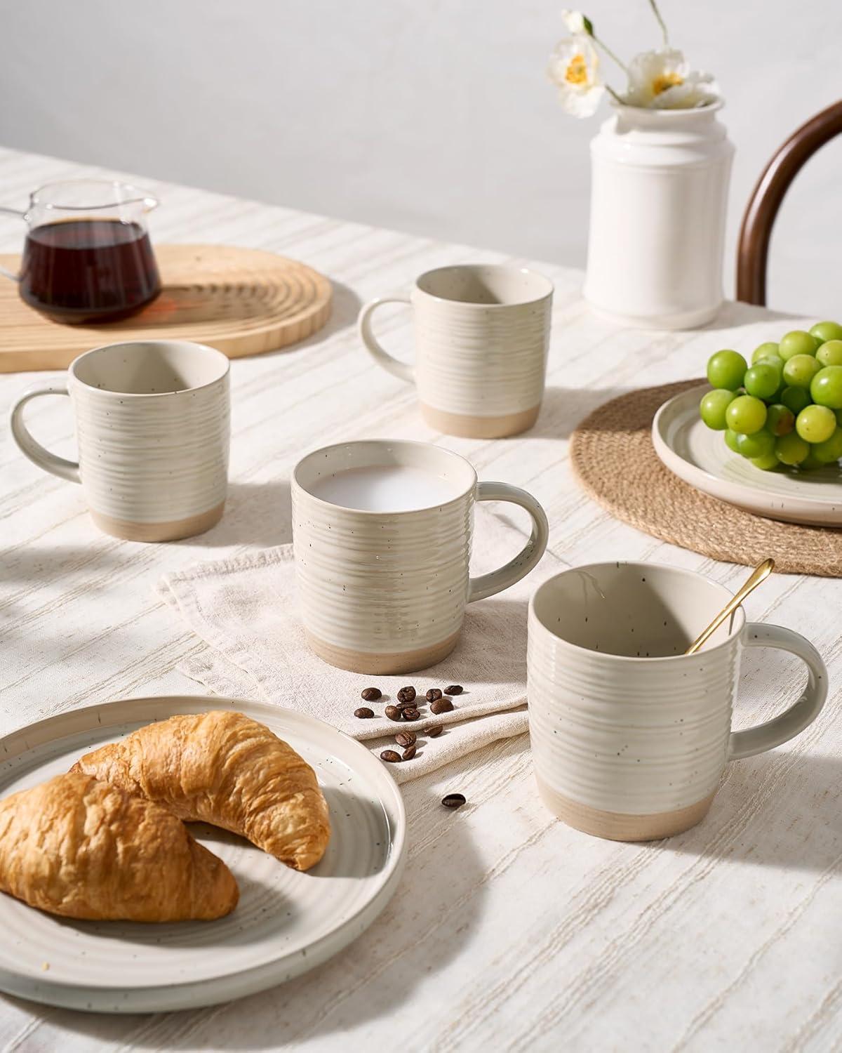 imagefamiware Coffee Mugs Set of 6 Milkyway 13 oz Mug Set Ceramic Cup Set with Handle for Coffee Tea Cocoa Milk Matte WhiteConstellationBeige