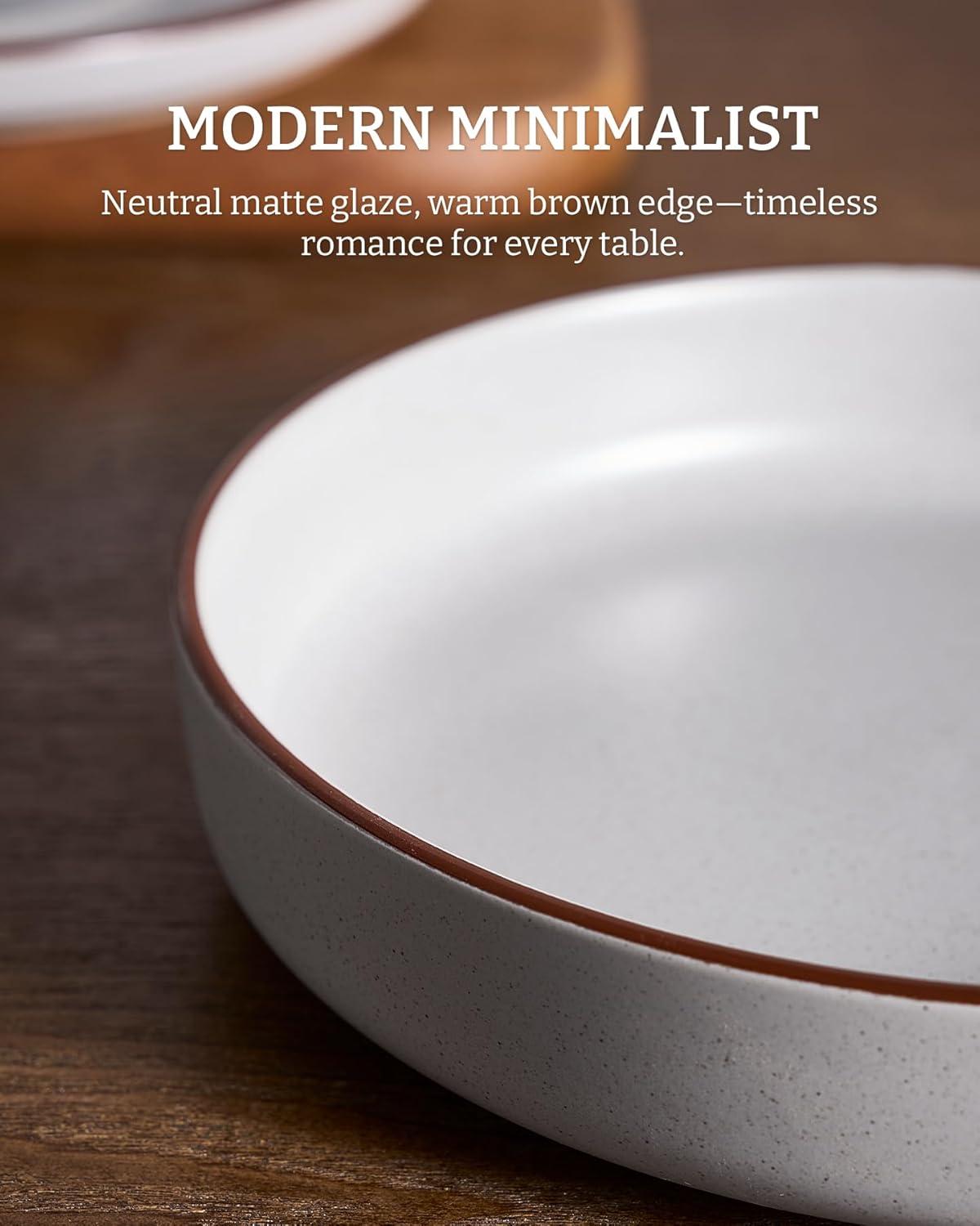 【AWESOME DESIGN】These pasta bowls are randomly scattered with speckled patterns of various sizes and shades to make each piece unique, and the use of handcrafted brown edges further adds dimension and artistry to the bowl, making it stand out from the crowd