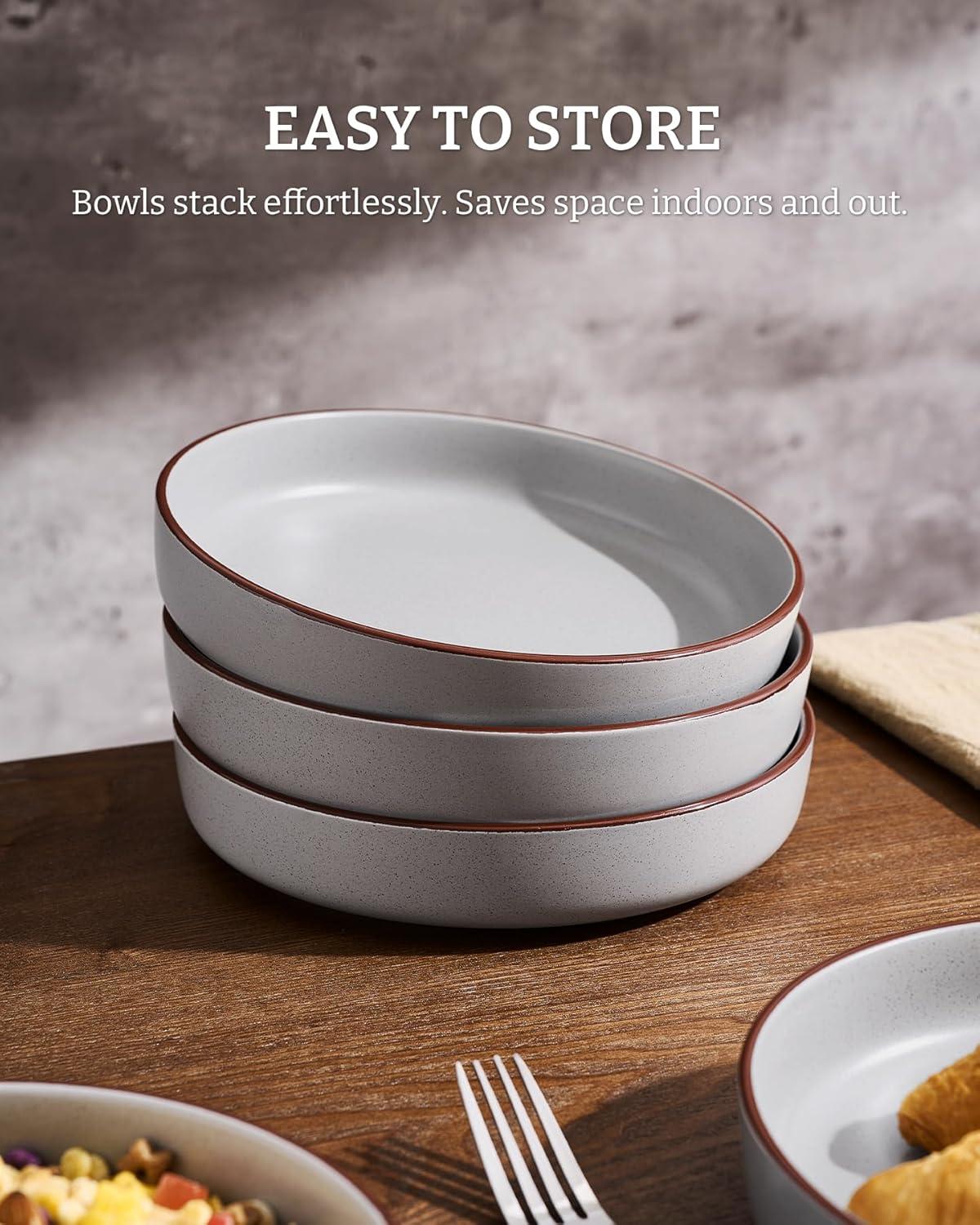 【MULTIPURPOSE BOWL SET】8.5 inches Dia, 33oz capacity, can hold both solids and liquids with ease, suitable for pasta, salads, soups, entrees, desserts and so on., it's definitely a perfect dinnerware set to serve a family breakfast, lunch or dinner