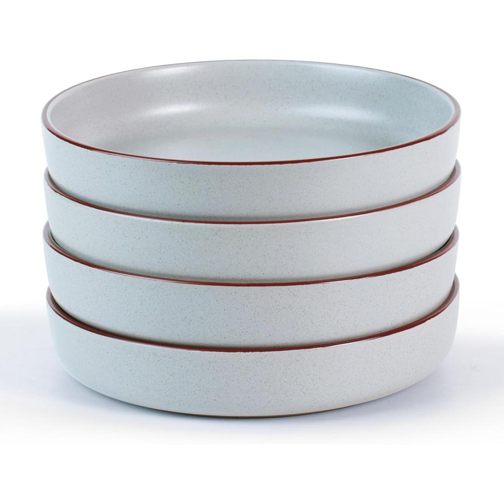 famiware Mercury Pasta Bowls Set of 8, 33 oz Large Salad Bowls, Ceramic Pasta Plates Bowls, Serving Bowls for Kitchen, Microwave & Dishwasher Safe, Dark Gray(Light Green)