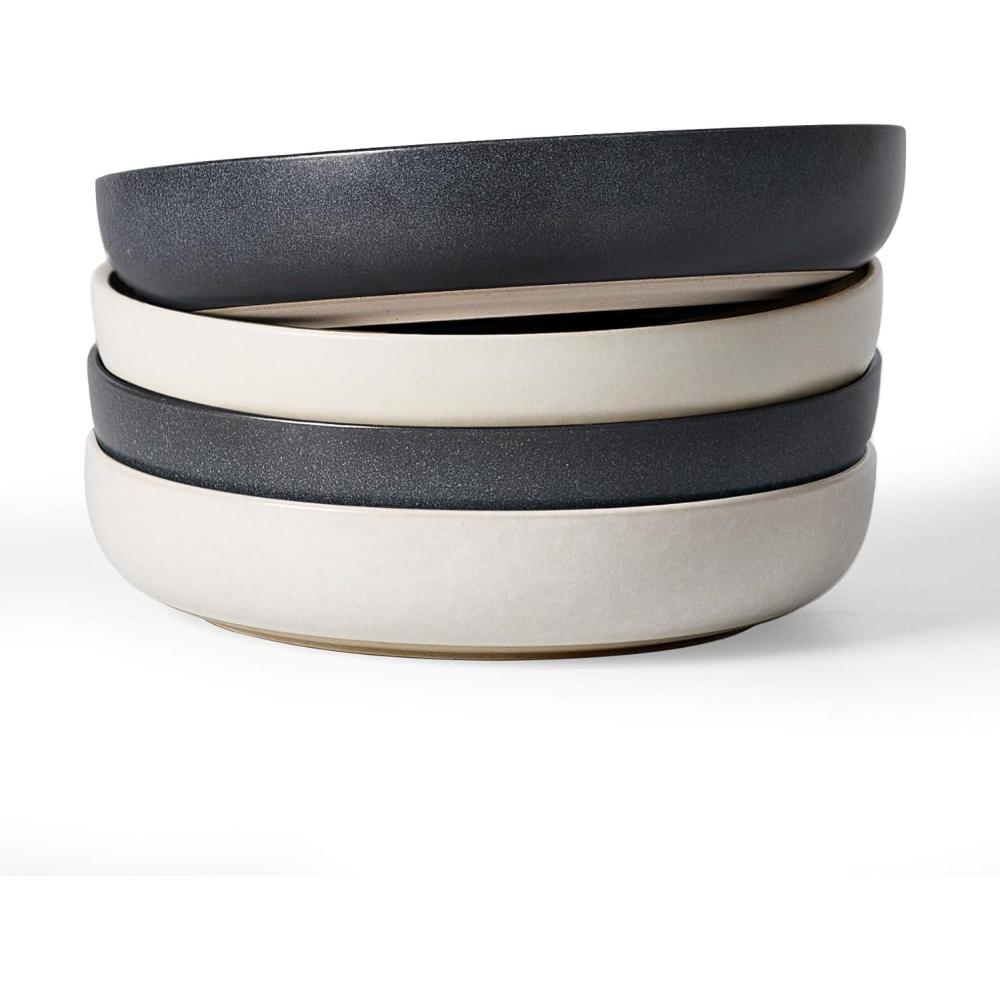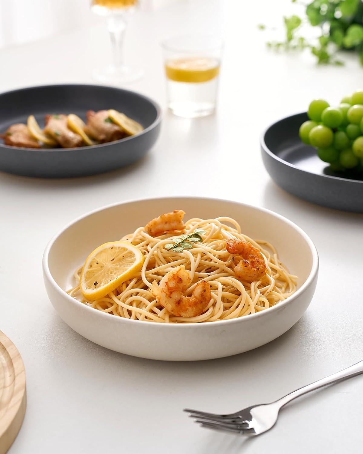 famiware Milkyway 33 oz Bowl Set, Pasta Bowls Set of 4, Salad Bowls, Double Reactive Glaze, Sturdy & Stackable, Ideal for Housewarming, Festivals, Creamy White with Speckles(Dark Charcoal & White)