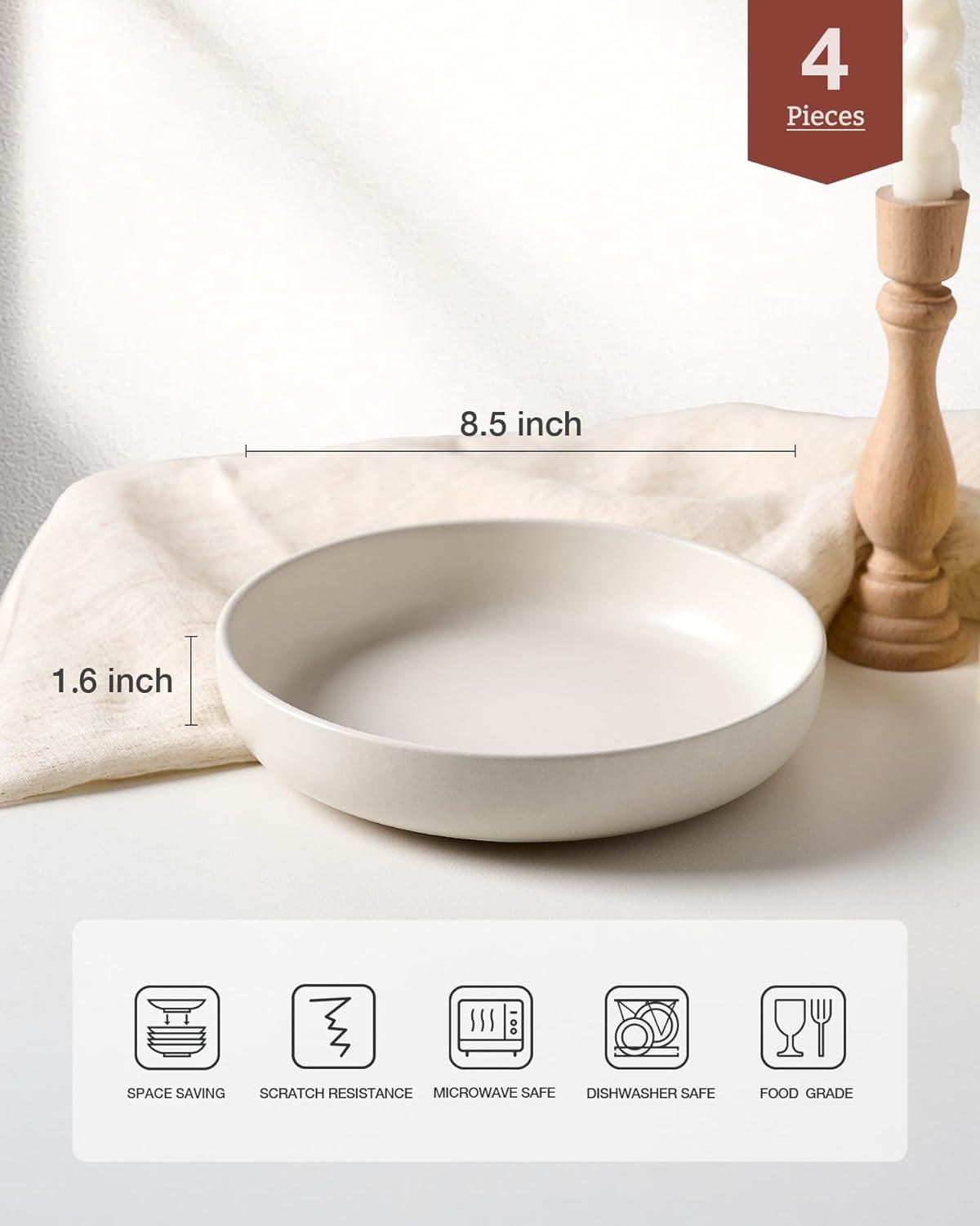 PASTA BOWL SET OF 4 – Ideal size 8.5’’ Dia, practical depth 1.6’’ H, It holds contents both solid & liquid with ease- great for pasta, soup, dessert, ice cream, rice, beans and so on