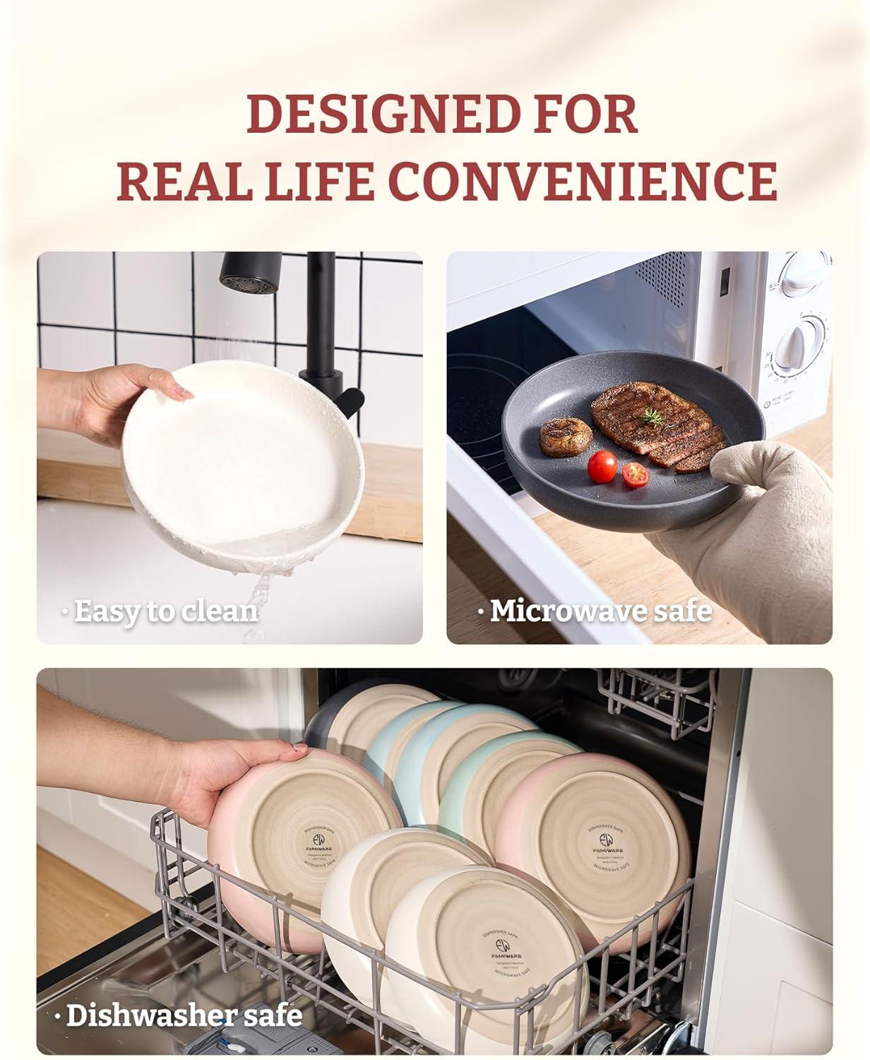 WITHSTAND THE TEST OF TIME – Made of organic and natural clay, these bowl plates are fired at 2340℉ for 13.5 hours, durable and shatterproof for long-term use