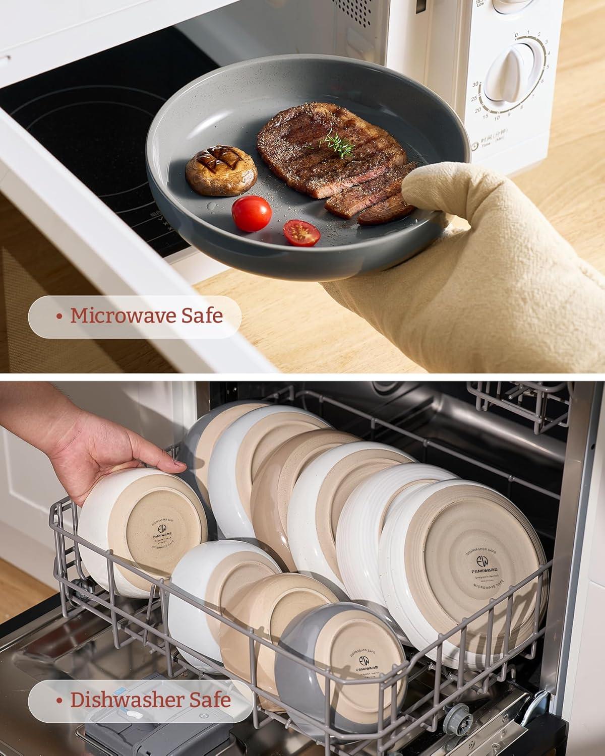 STACKABLE & EASY TO CLEAN- These dinner bowls are stackable and don't take up a lot of space in your cupboard. Easy to clean, you can wash them with soap and hot water or place them into your dishwasher