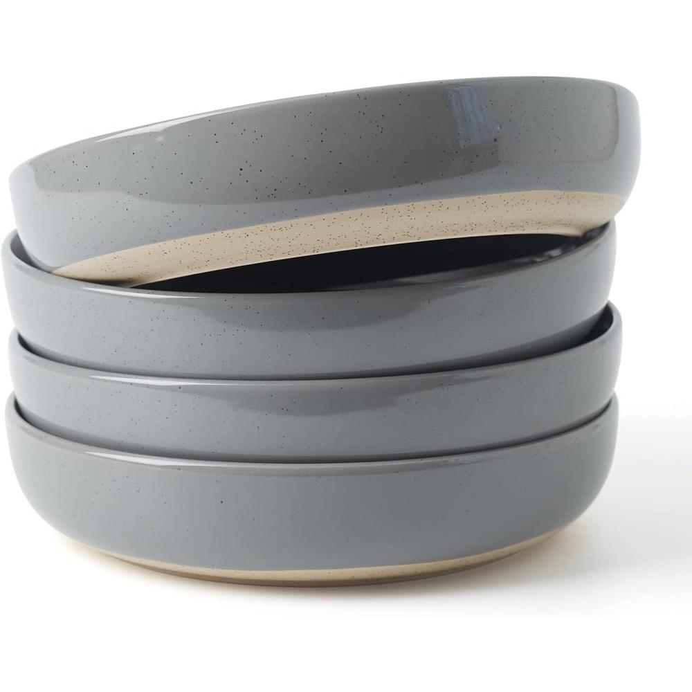 imagefamiware Milkyway Pasta Bowls Set of 4 85quot Large Salad Bowls Double Reactive Glaze Sturdy ampamp Stackable Ideal for Housewarming Festivals Light GreenDark Gray
