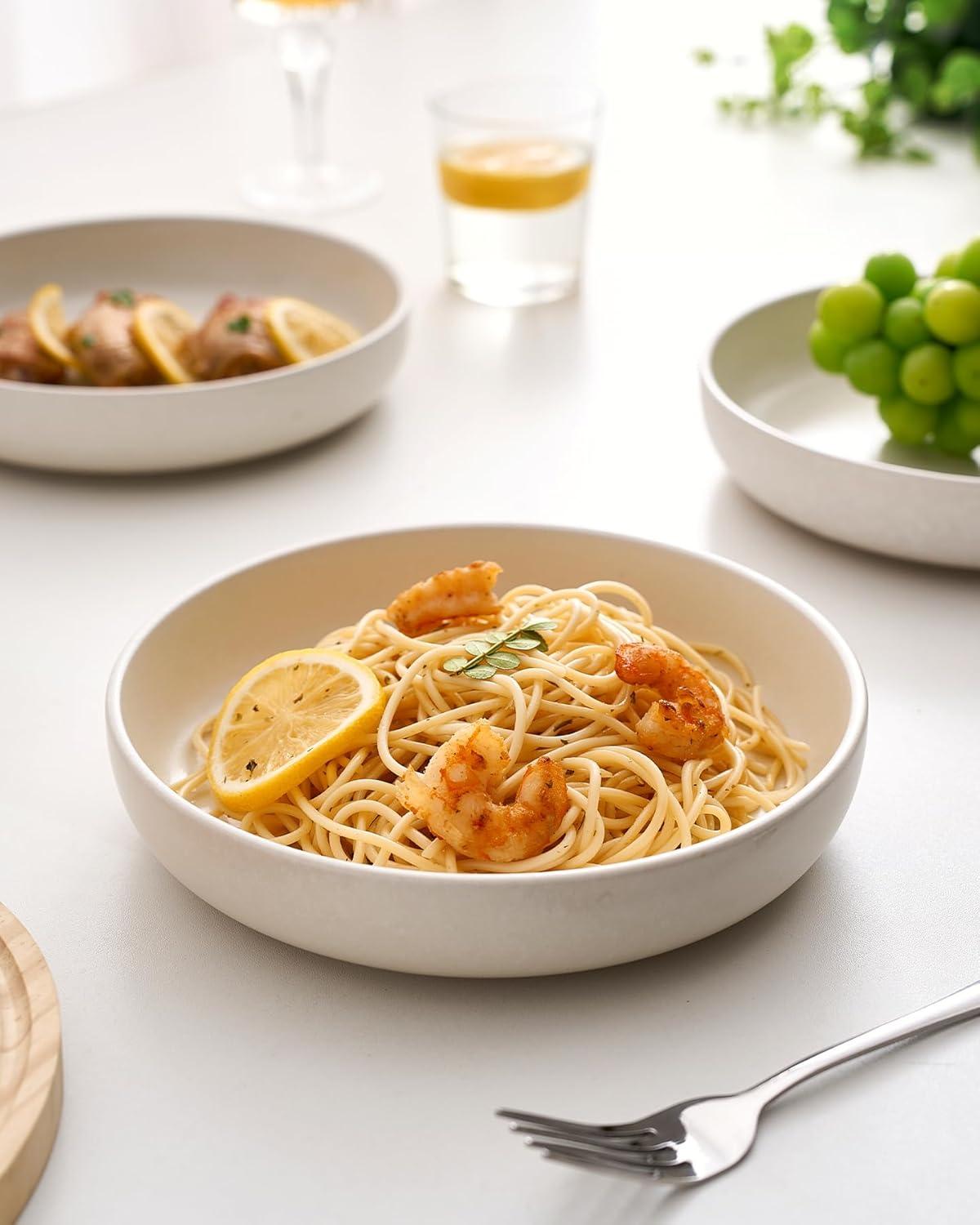 PASTA BOWL SET OF 4 – Ideal size 8.5’’ Dia, practical depth 1.6’’ H, It holds contents both solid & liquid with ease- great for pasta, soup, dessert, ice cream, rice, beans and so on