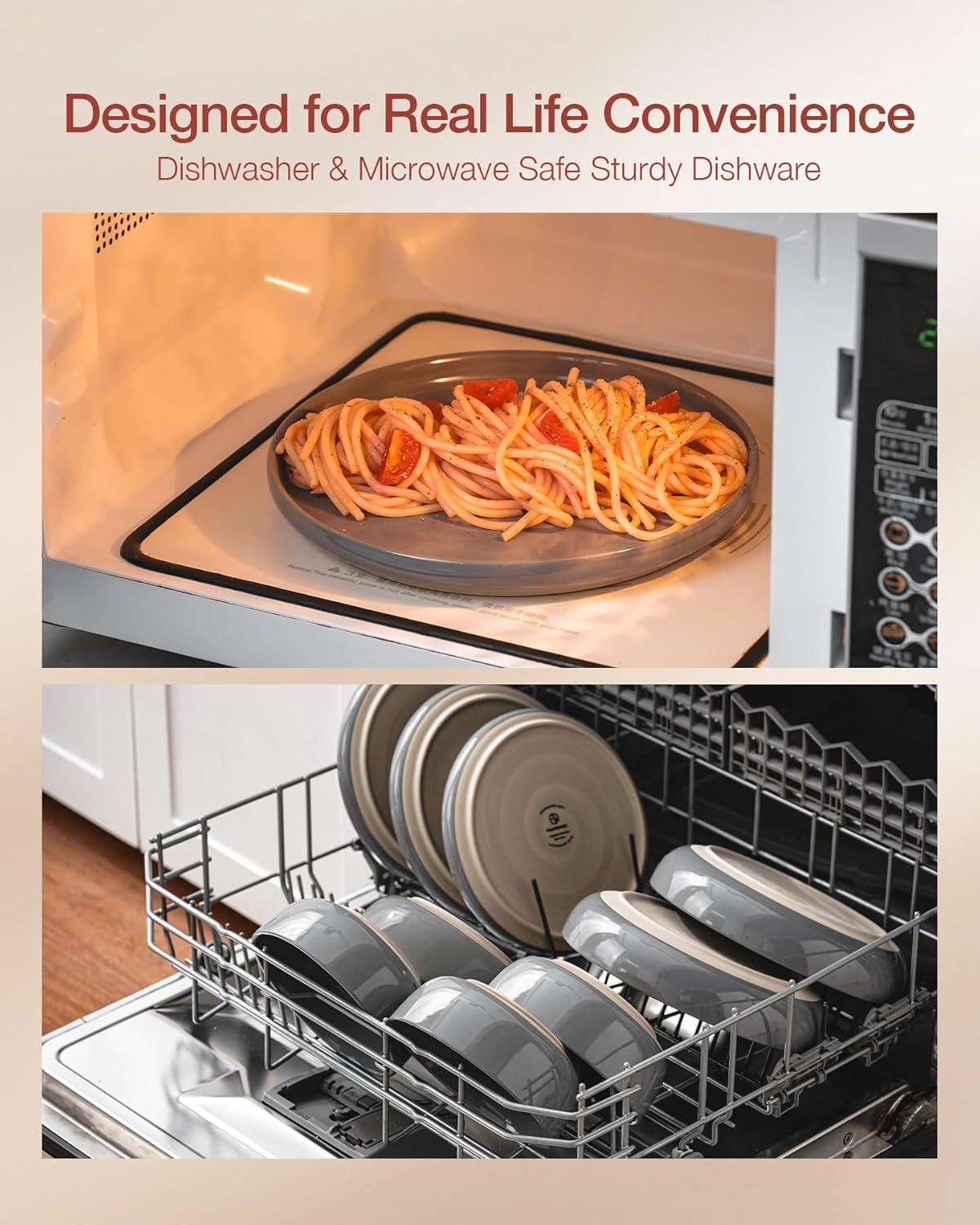 【DISHWASHER AND MICROWAVE SAFE】Our dishes have passed microwave and dishwasher safe testing at internationally accredited laboratories. Each plate and bowl is dishwasher safe and microwave safe.