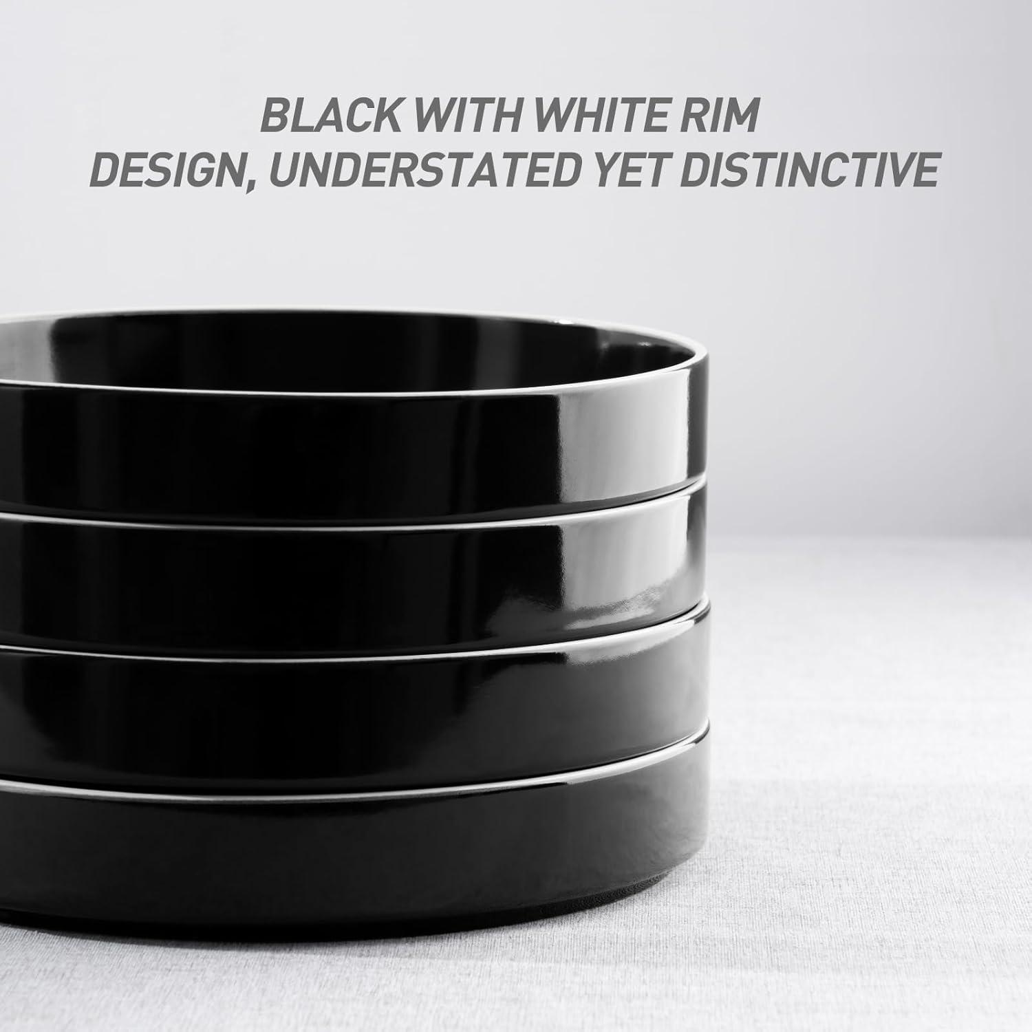 famiware Nebula Pasta Bowls for 4, 8.75-inch Salad Bowl Sets, Large Wide Bowls for Serving Dinner, Hand-Painted Brown Rim, Microwave and Dishwasher Safe, Vanilla White(Black with White Rim)