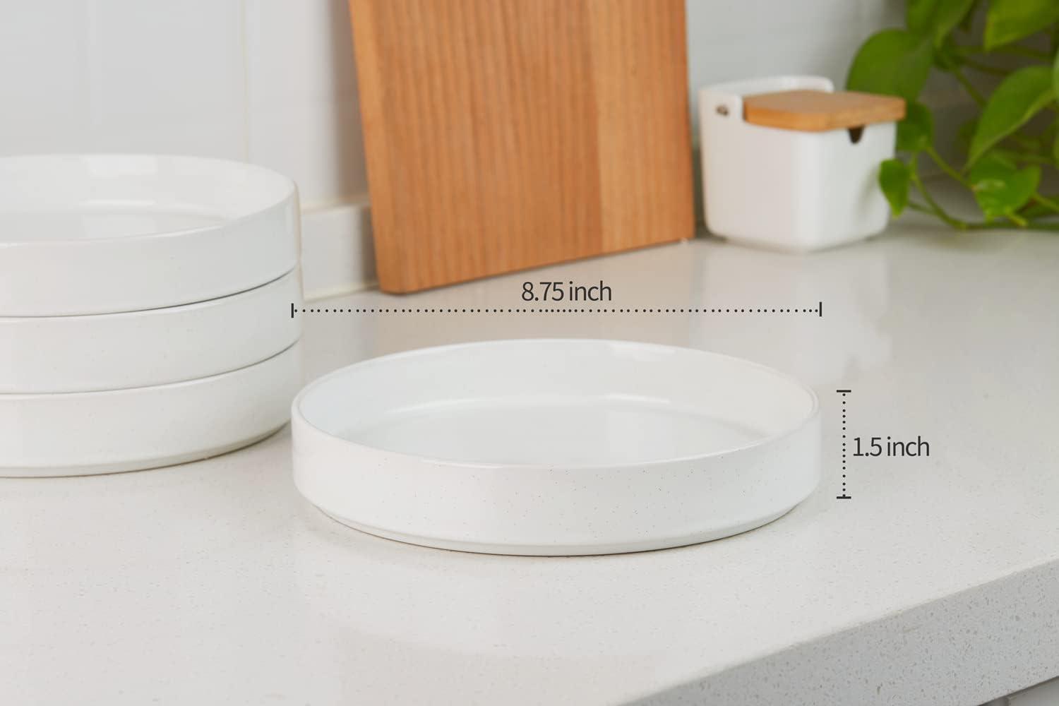 imagefamiware Nebula Pasta Bowls for 4 875inch Salad Bowl Sets Large Wide Bowls for Serving Dinner HandPainted Brown Rim Microwave and Dishwasher Safe Vanilla WhiteCreamy White with Colorful Speckles