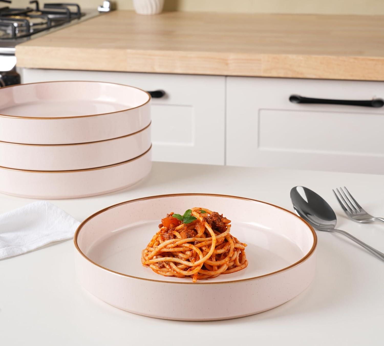 Be the first to review “famiware Nebula Pasta Bowls for 4, 8.75-inch Salad Bowl Sets, Large Wide Bowls for Serving Dinner, Hand-Painted Brown Rim, Microwave and Dishwasher Safe, Vanilla White(Light Pink)”