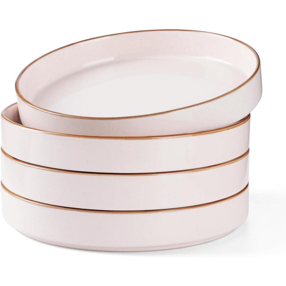 imagefamiware Nebula Pasta Bowls for 4 875inch Salad Bowl Sets Large Wide Bowls for Serving Dinner HandPainted Brown Rim Microwave and Dishwasher Safe Vanilla WhiteLight Pink