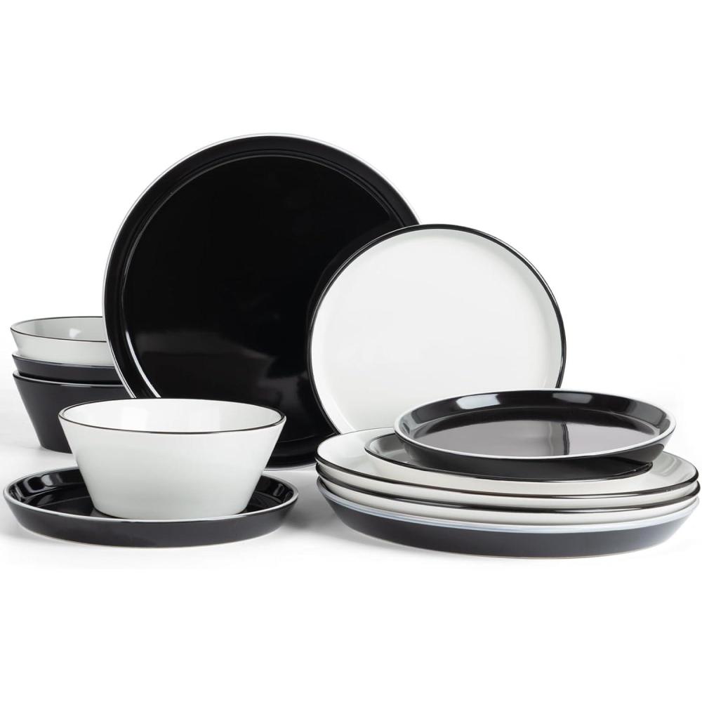 [Sturdy & Scratch-Resistant]: The glaze of our plate and bowl set is fired at 2340℉ for 13.5 hours to form a strong scratch resistant surface. No need to worry about scratches from your forks or knives