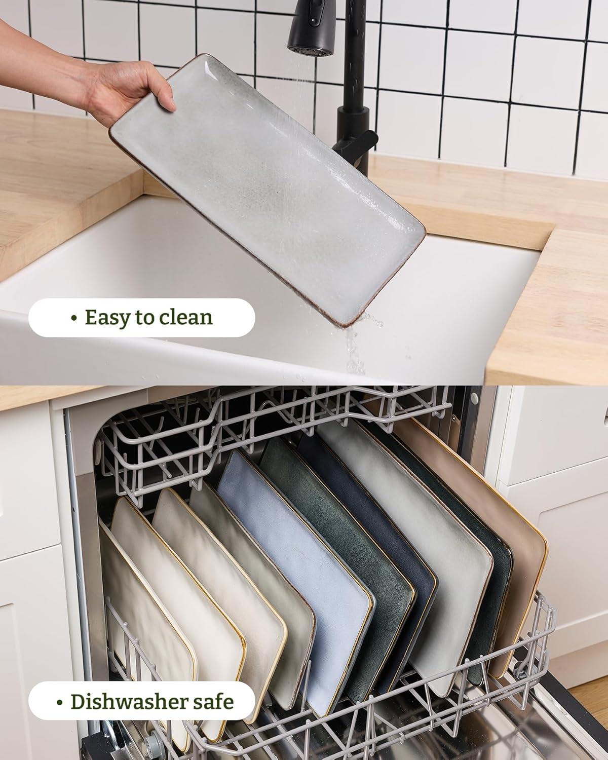 Dishwasher and Microwave Safe: Famiware rectangle plates are made of premium stoneware. Each serving platters and trays is Dishwasher and microwave safe.