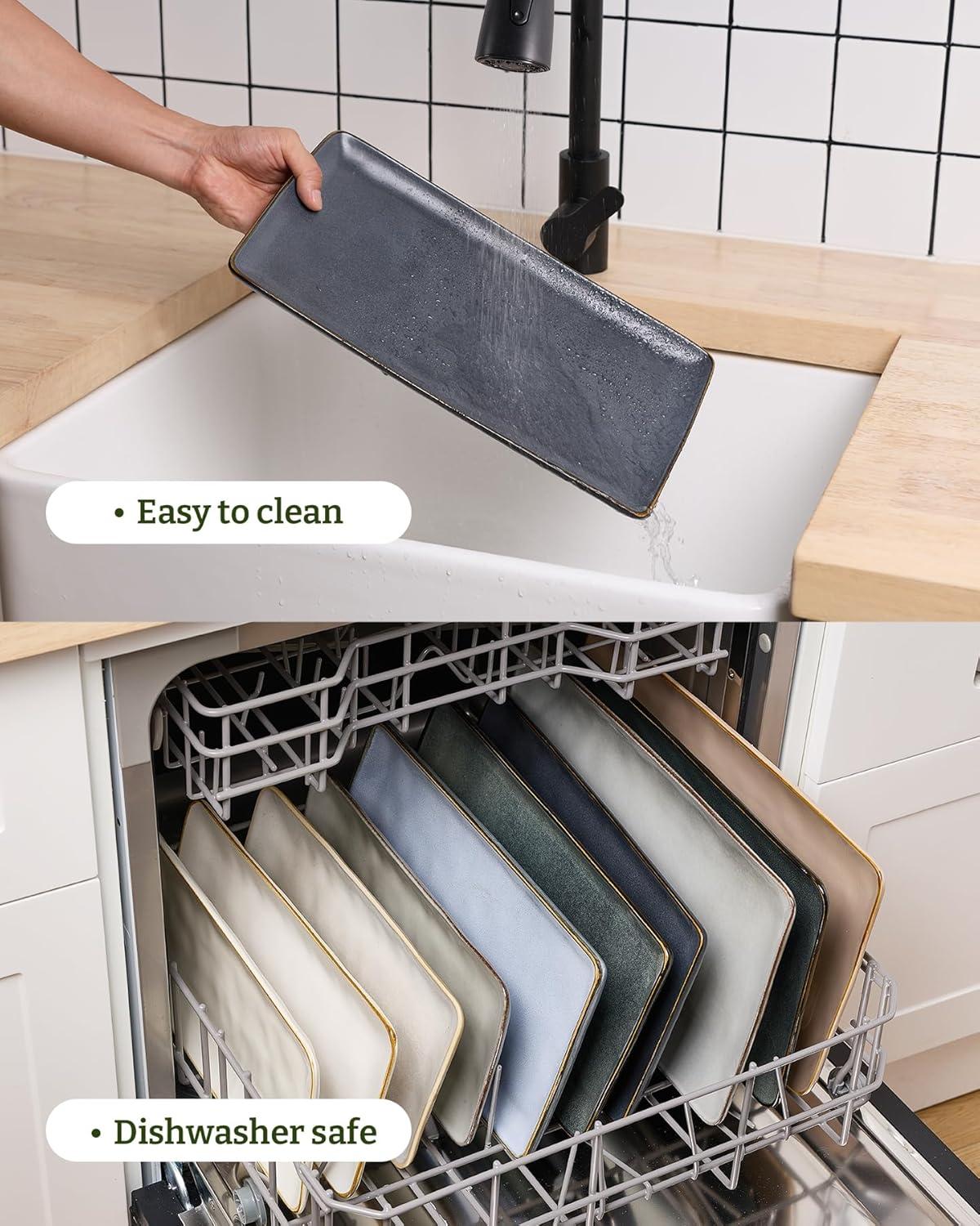 Dishwasher and Microwave Safe: Famiware rectangle plates are made of premium stoneware. Each serving platters and trays is Dishwasher and microwave safe.