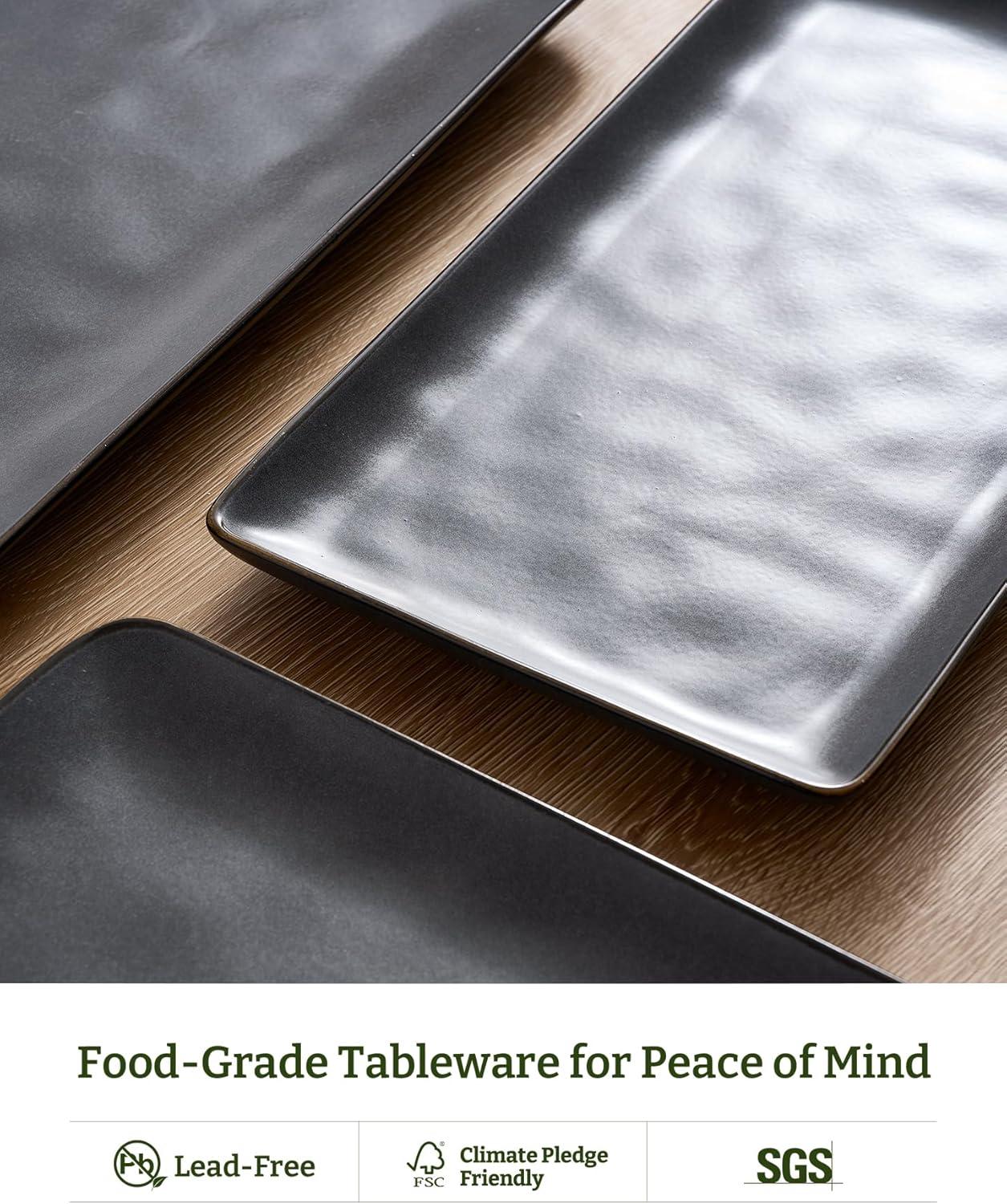 famiware Serving Platter, Rectangular 15.67/14.1/12.6inch Serving Dishes for Entertaining, Dishwasher Safe, Stoneware Serving Trays for Party, Food, Turkey, Snack, Cheese, Reactive Glaze, Matte White(Matte Black)