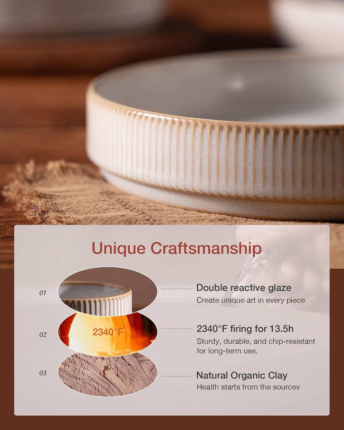 HANDCRAFTED ELEGANCE: Each of our pasta bowls is a testament to the skill and creativity of our artisans. They are handcrafted and glazed with a DOUBLE REACTIVE GLAZE that brings out a distinct, dreamy color. The hues may differ on your screen, showcasing the one-of-a-kind beauty of our artisanal process