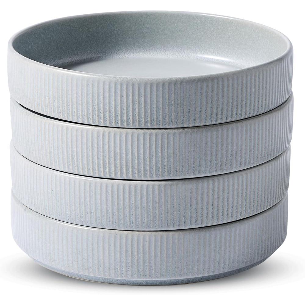 famiware Star 7.5" Pasta Bowls Set, Salad Bowl Set of 4, Double Reactive Glaze, Stackable, Ideal for Your Friend for Housewarming, Festivals, Light Gray(Light Gray)