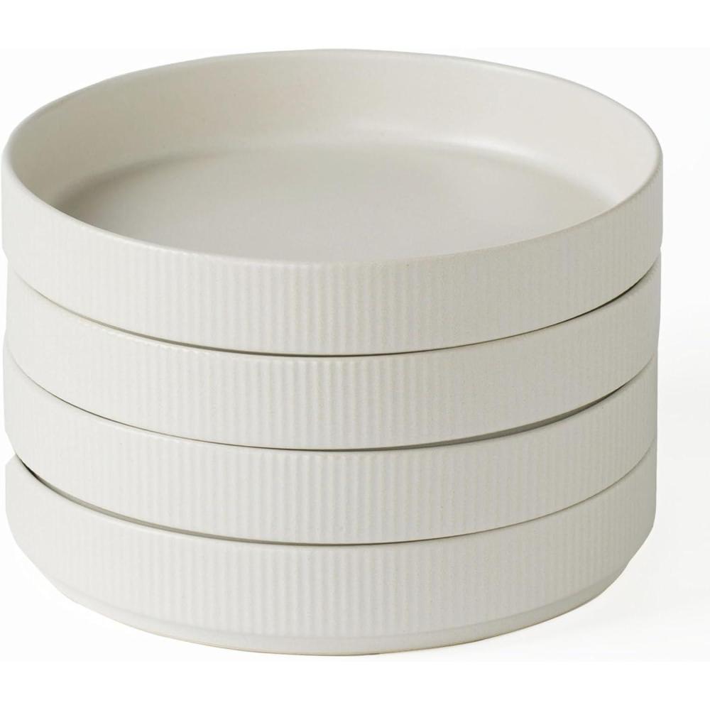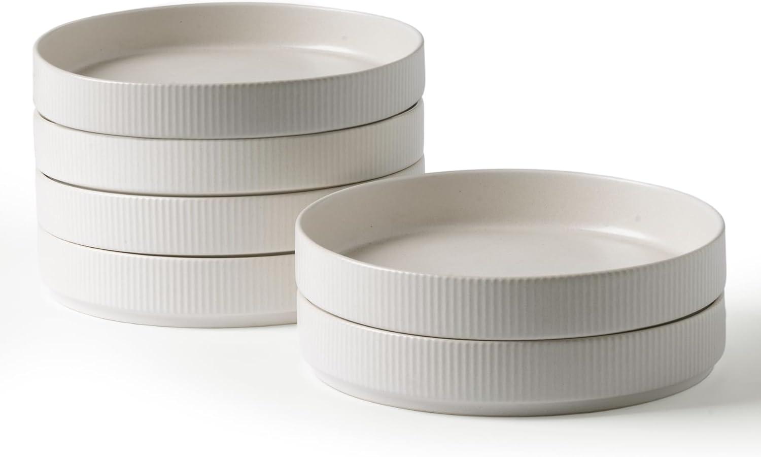 famiware Star 7.5″ Pasta Bowls Set, Salad Bowl Set of 4, Double Reactive Glaze, Stackable, Ideal for Your Friend for Housewarming, Festivals, Light Gray(White)