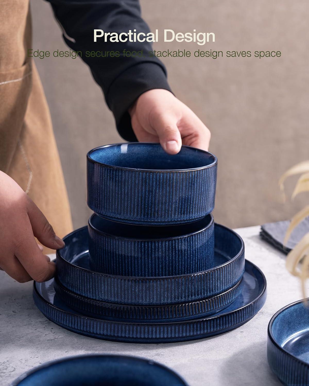 [Stackable]: The bowls and plates set stack easily, saving kitchen storage space and keeping your dining area organized